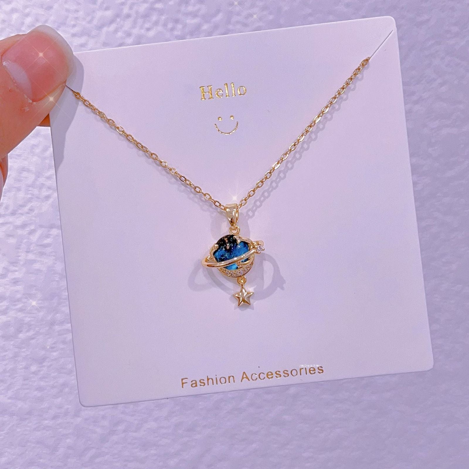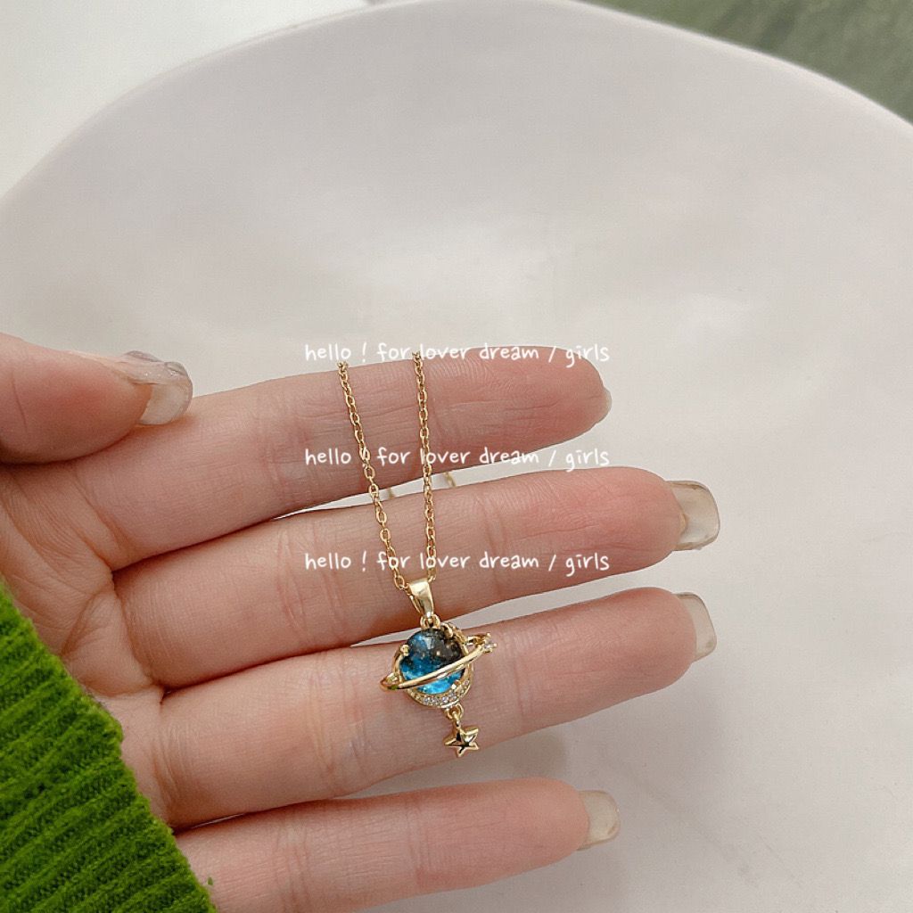 stainless steel necklace , golden necklace, anti tarnish necklace, anti tarnish jewellery, princess necklace, blue jewelery, blue planet necklace, planet necklace, star necklace.