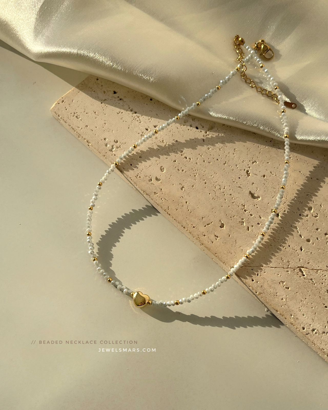 Beach necklace , Crystal beaded necklace, beads bracelets, stainless steel necklace, pearl jewellery , heart necklace, pearl necklace, golden necklace.