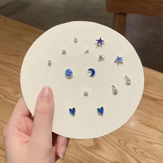 Korean earrings, cute jewellery , soft girl aesthetic, campus collection, planet earrings, star earrings, cute earrings, moon earrings, blue earrings, heart earrings.
