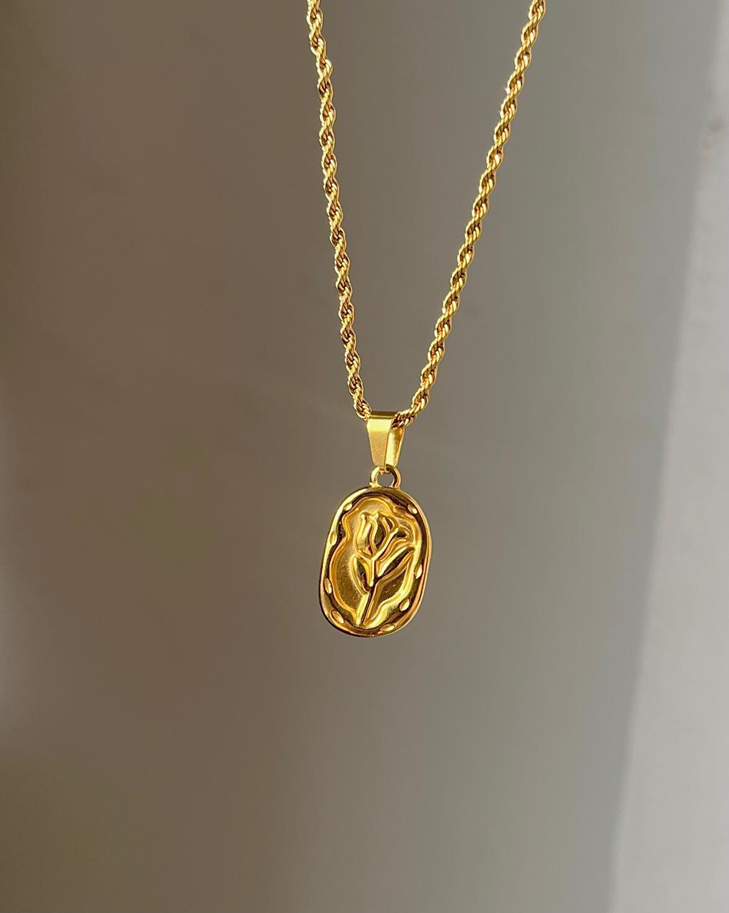 stainless steel necklace , golden necklace, anti tarnish necklace, anti tarnish jewellery, floral necklace, flower necklace, rose chain necklace