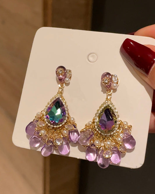 Golden earrings, party earrings, Korean earrings collection , girly girl earrings, glam earrings collection, dreamy earrings, purple earrings, floral earrings, butterfly earrings, flower earrings, dreamy jewellery