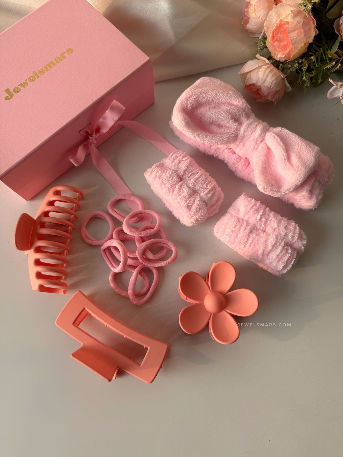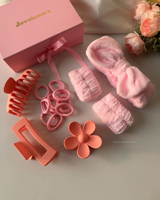 [ pink hair accessories , peach hair accessories, gift hamper, Valentine’s Day gift hamper, gift for her , pink accessories ]