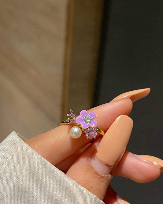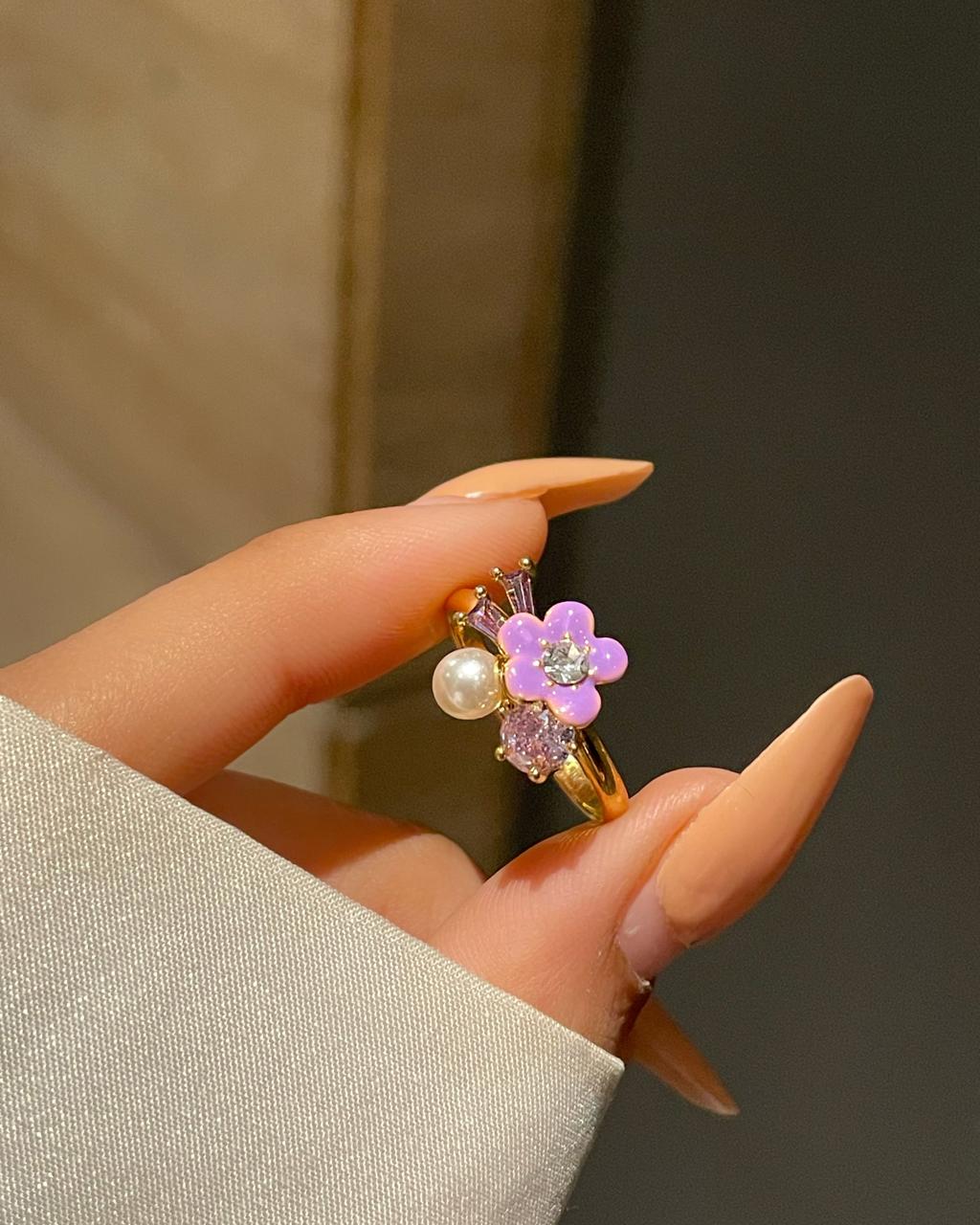 Floral ring, gifts for her , nature lover jewelery, minimal ring, purple flower ring