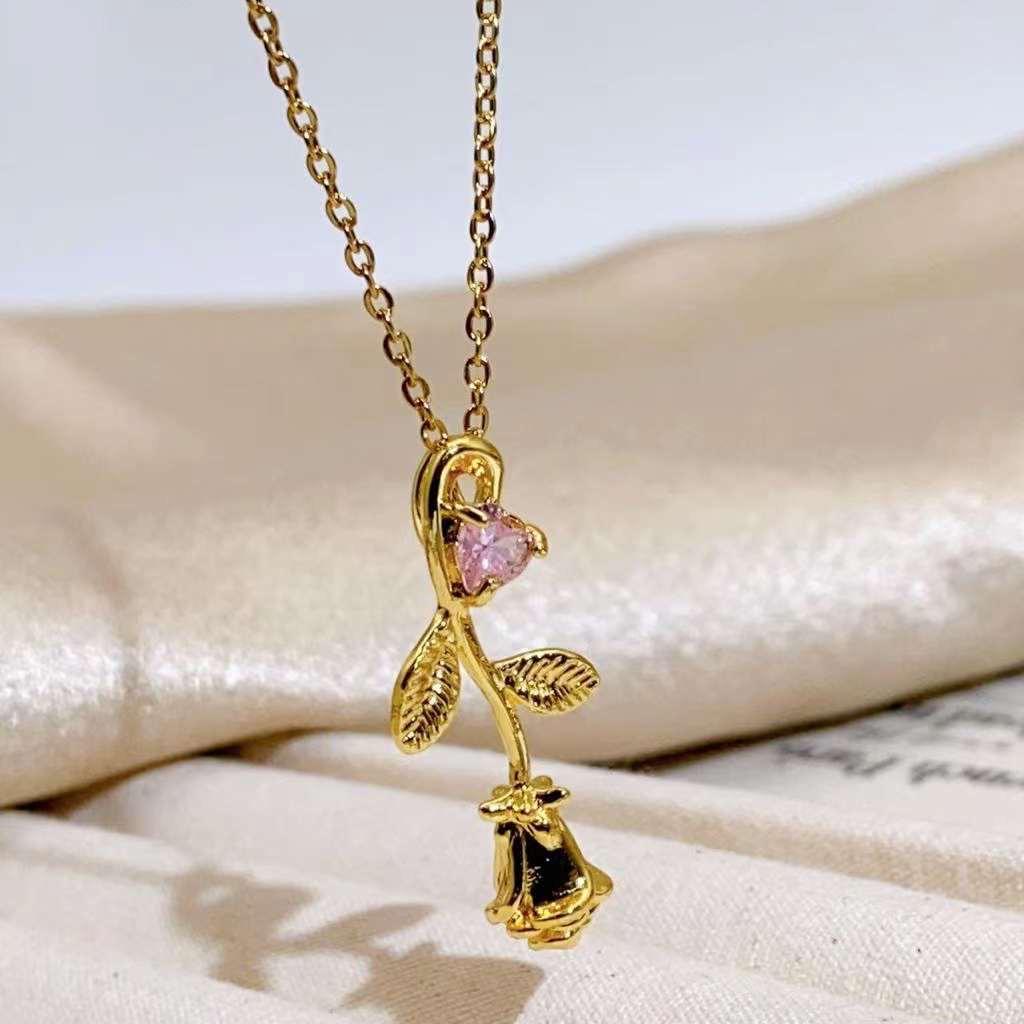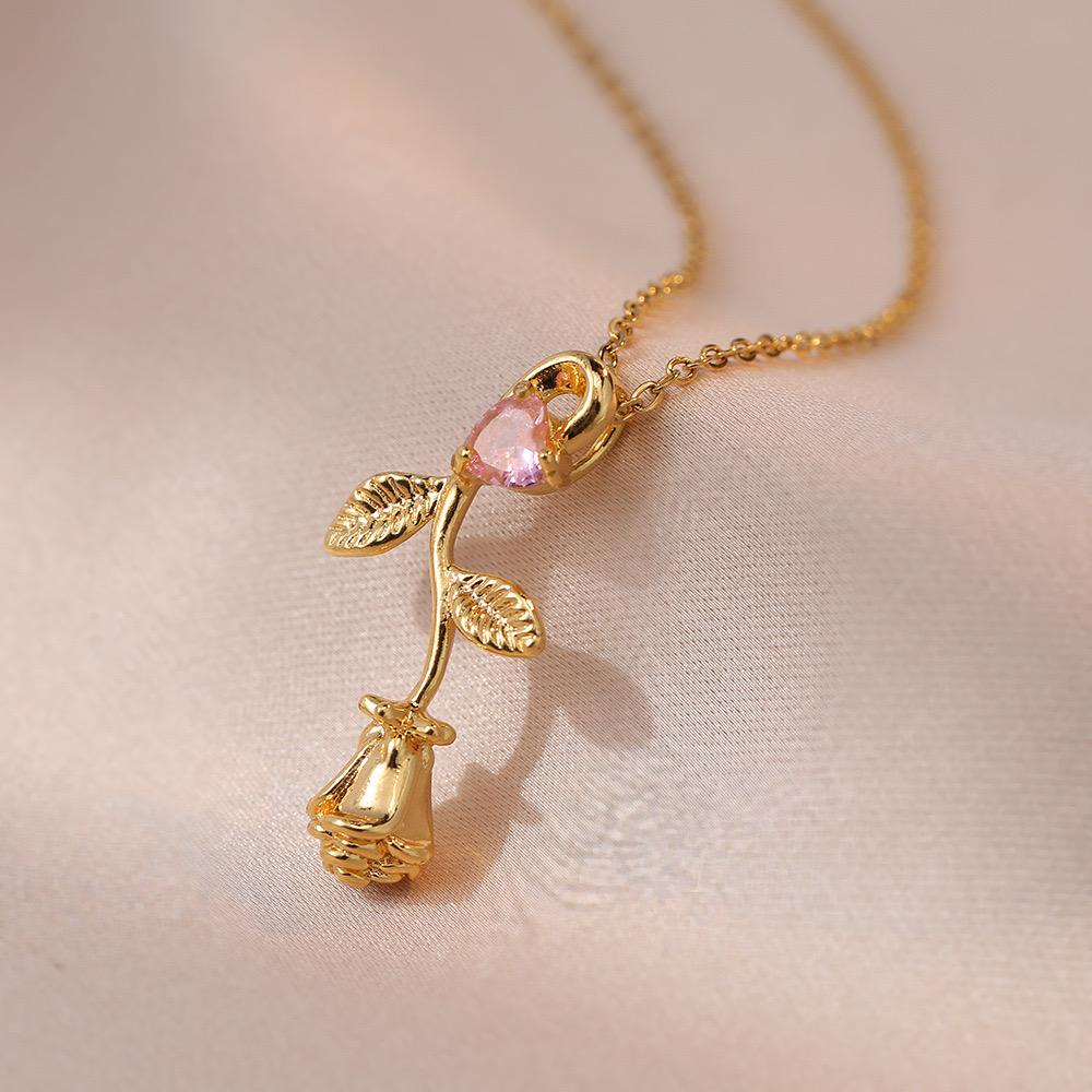 stainless steel necklace , pink necklace, golden necklace, anti tarnish necklace, anti tarnish jewellery, pink heart necklace, heart necklace, flower necklace, floral jewellery.