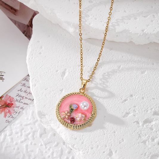 Pearl necklace, pink necklace, Pinterest inspired accessories, Pinteresty jewellery, Anti tarnish necklace, gold jewellery, stainless steel necklace, gold plated necklace