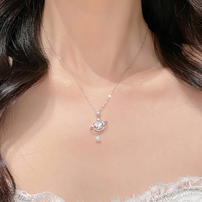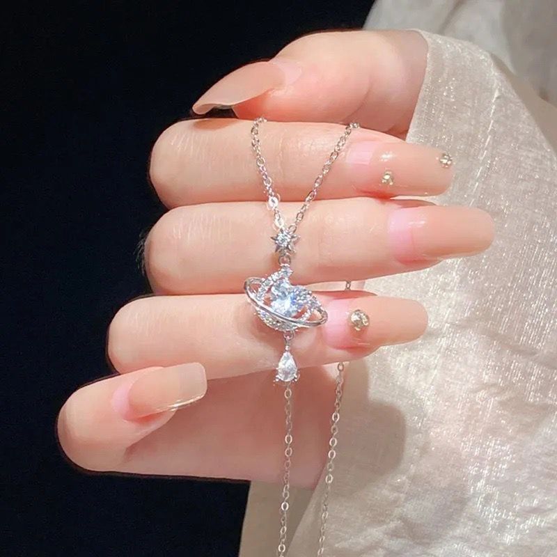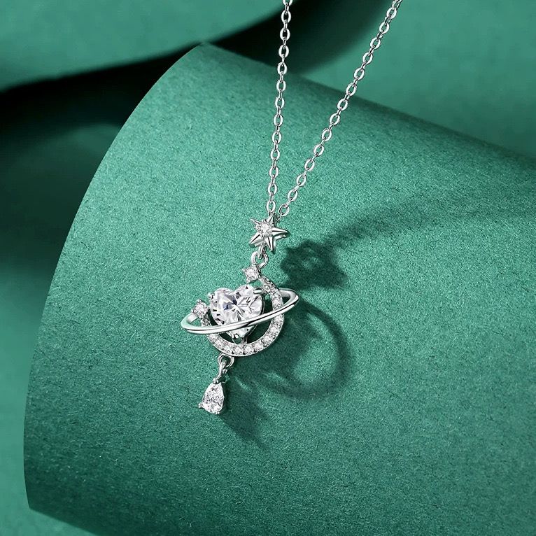 stainless steel necklace , silver necklace, anti tarnish necklace, anti tarnish jewellery, star necklace, planet necklace, planet jewelery.