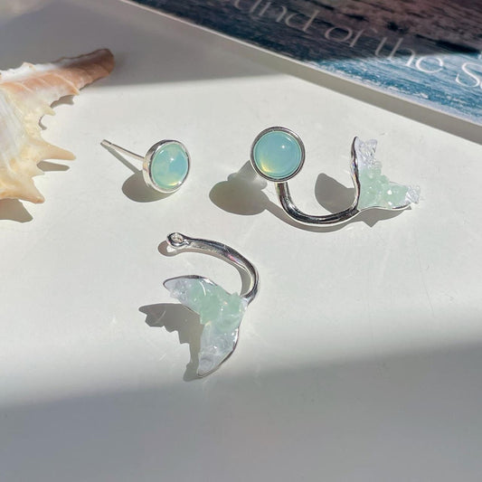 Korean earrings , soft girl aesthetic, ice blue mermaid earrings, beach earrings, blue earrings.