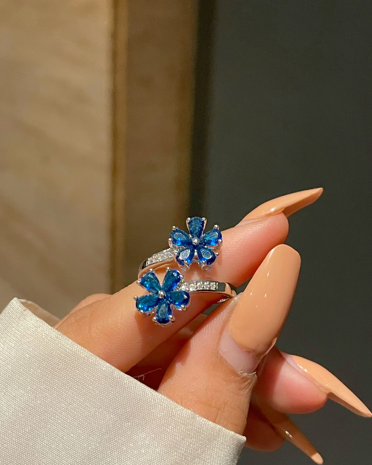 Minimal ring, flower jewellery, minimal jewelery, blue flower ring, floral ring, gift for her, minimal ring, flower ring.