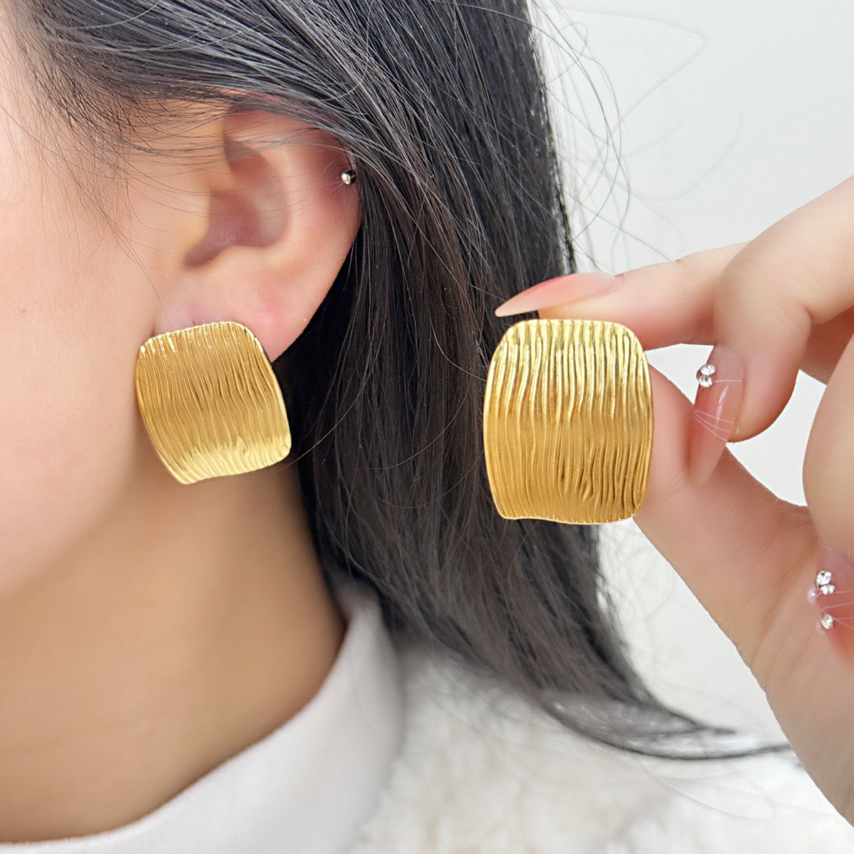 Gold earrings, textured earrings, gold plated earrings, trendy earrings, Pinteresty earrings, anti tarnish earrings, Pinterest inspired jewellery