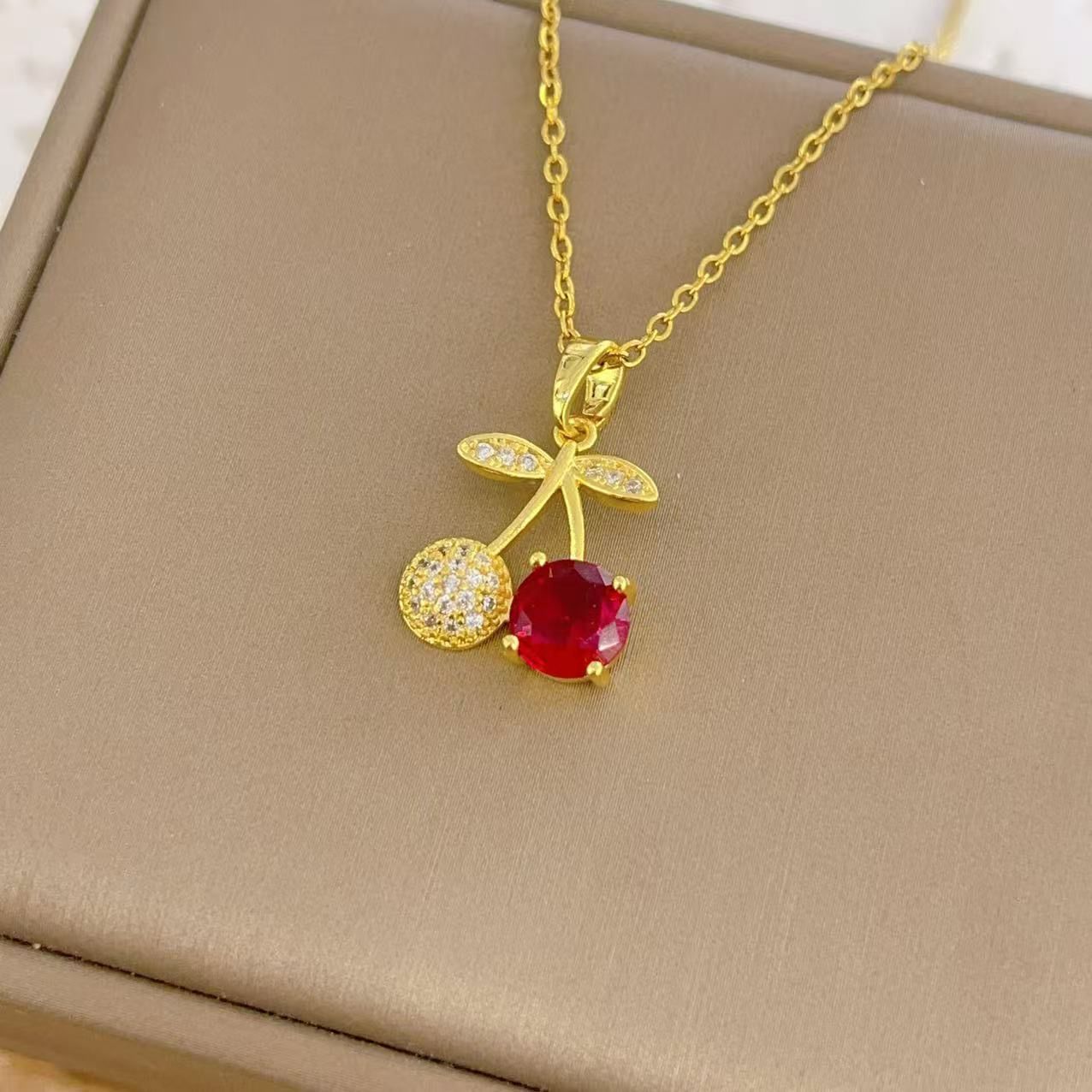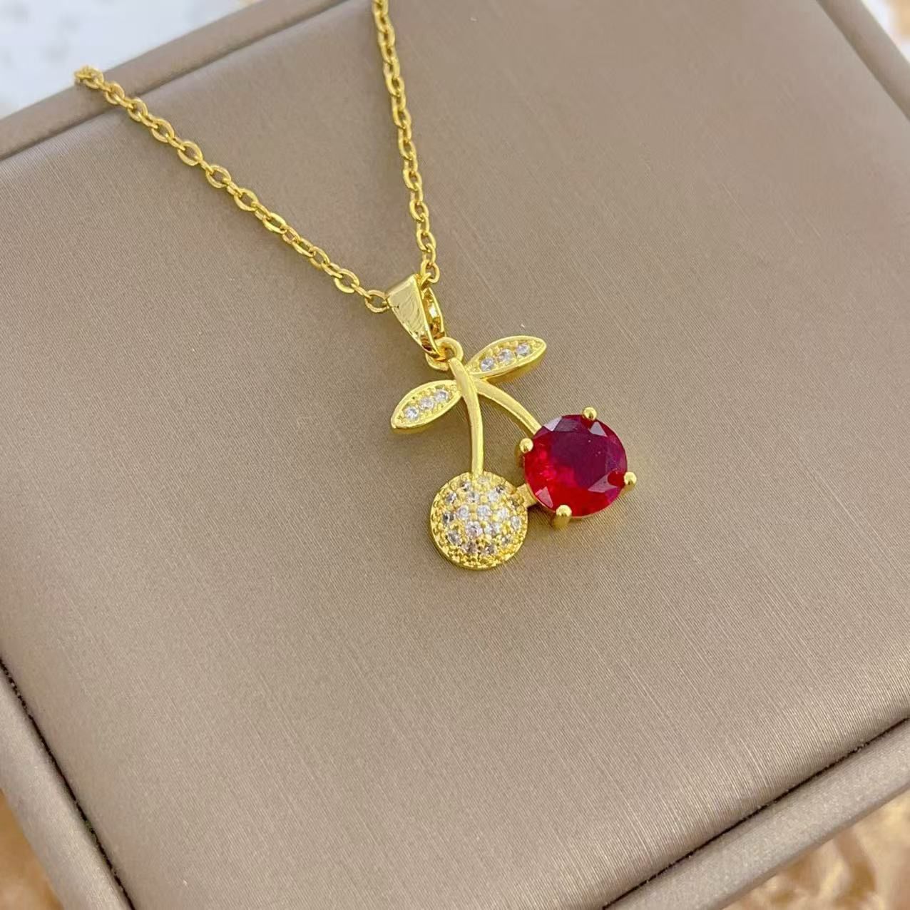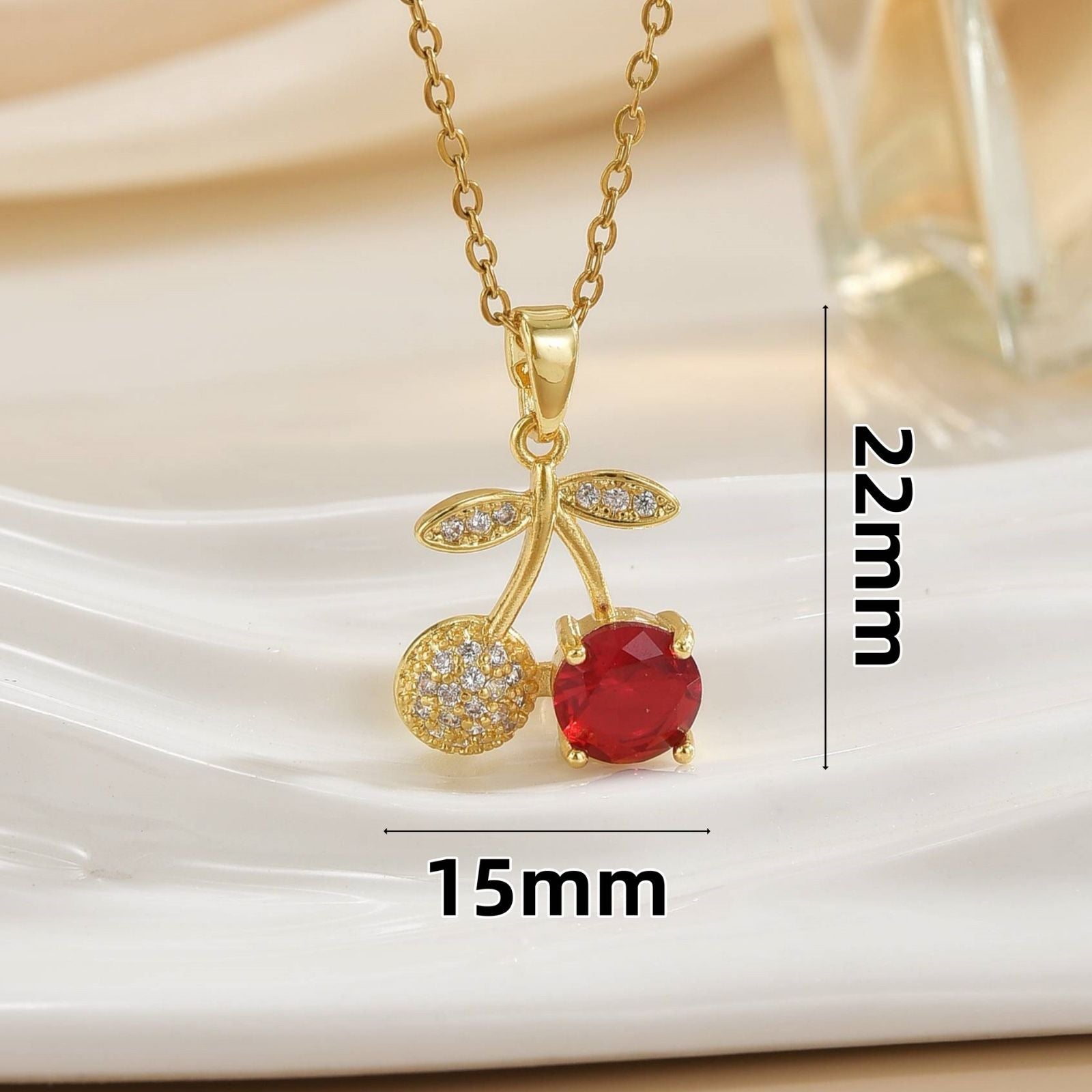Cherry Necklace, red necklace, Pinterest inspired accessories, Pinteresty jewellery, Anti tarnish necklace, gold jewellery, stainless steel necklace, gold plated necklace