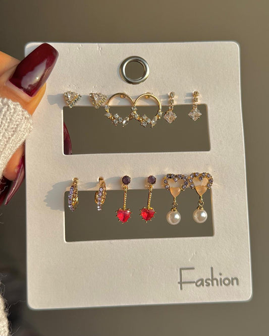 Korean earrings, cute jewellery , campus collection, red heart earrings, golden earrings, dreamy earrings , korean jewellery, purple earrings.