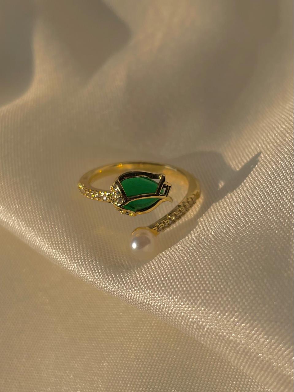 Flower ring, minimal ring, soft girl aesthetic, gift for her, green flower ring, pearl ring.
