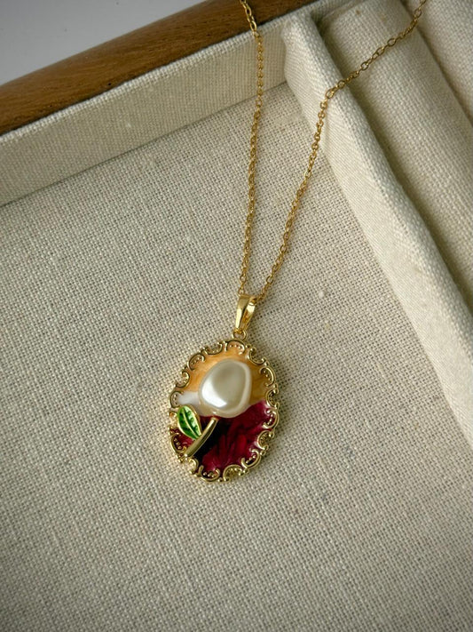 gold necklace, Pinterest inspired accessories, flower necklace, floral jewellery, Anti tarnish necklace, stainless steel necklace, red necklace gold plated necklace, old money aesthetic, Pearl jewellery, tulip necklace