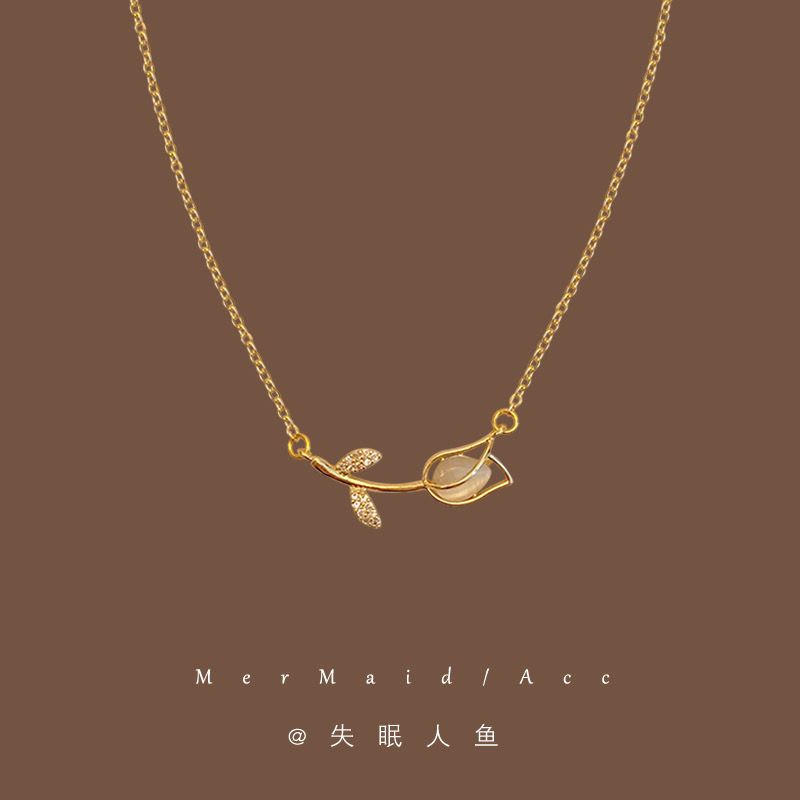 Tulips necklace, gold necklace, dreamy necklace, Pinterest inspired accessories, Pinteresry Jewellery, soft girl aesthetic, Anti tarnish necklace