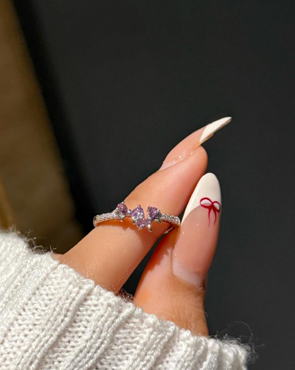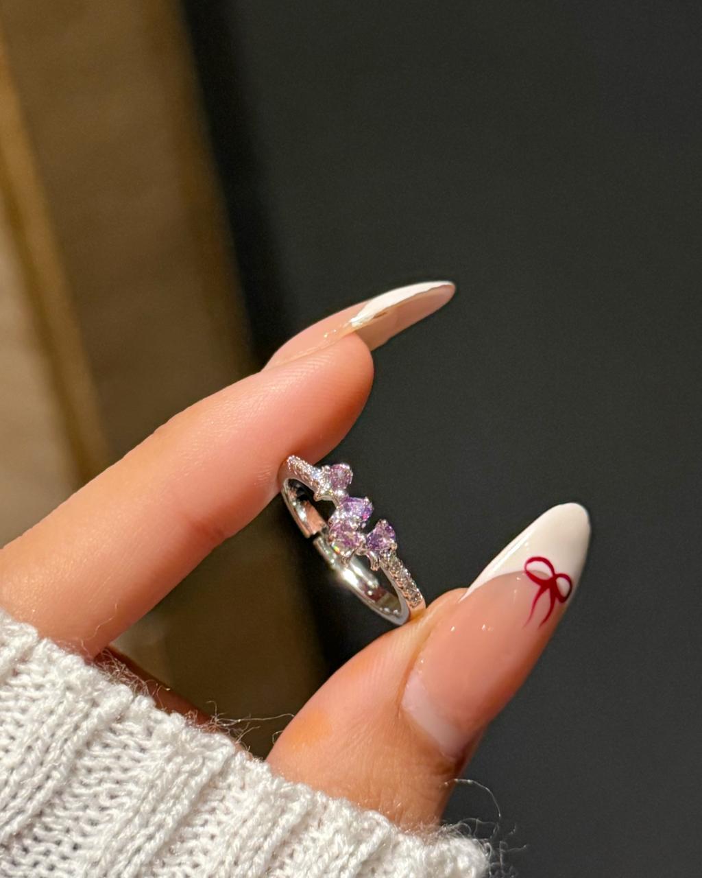 Minimal ring , minimal jewelery, purple ring, bow ring, purple bow ring