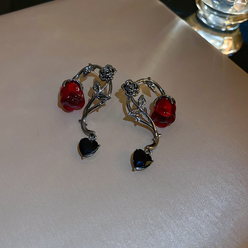 Silver earrings, rose earrings, grunge aesthetic, grudge jewellery, Wednesday adams earrings, Pinterest inspired accessories, Pinteresty jewellery, silver jewellery