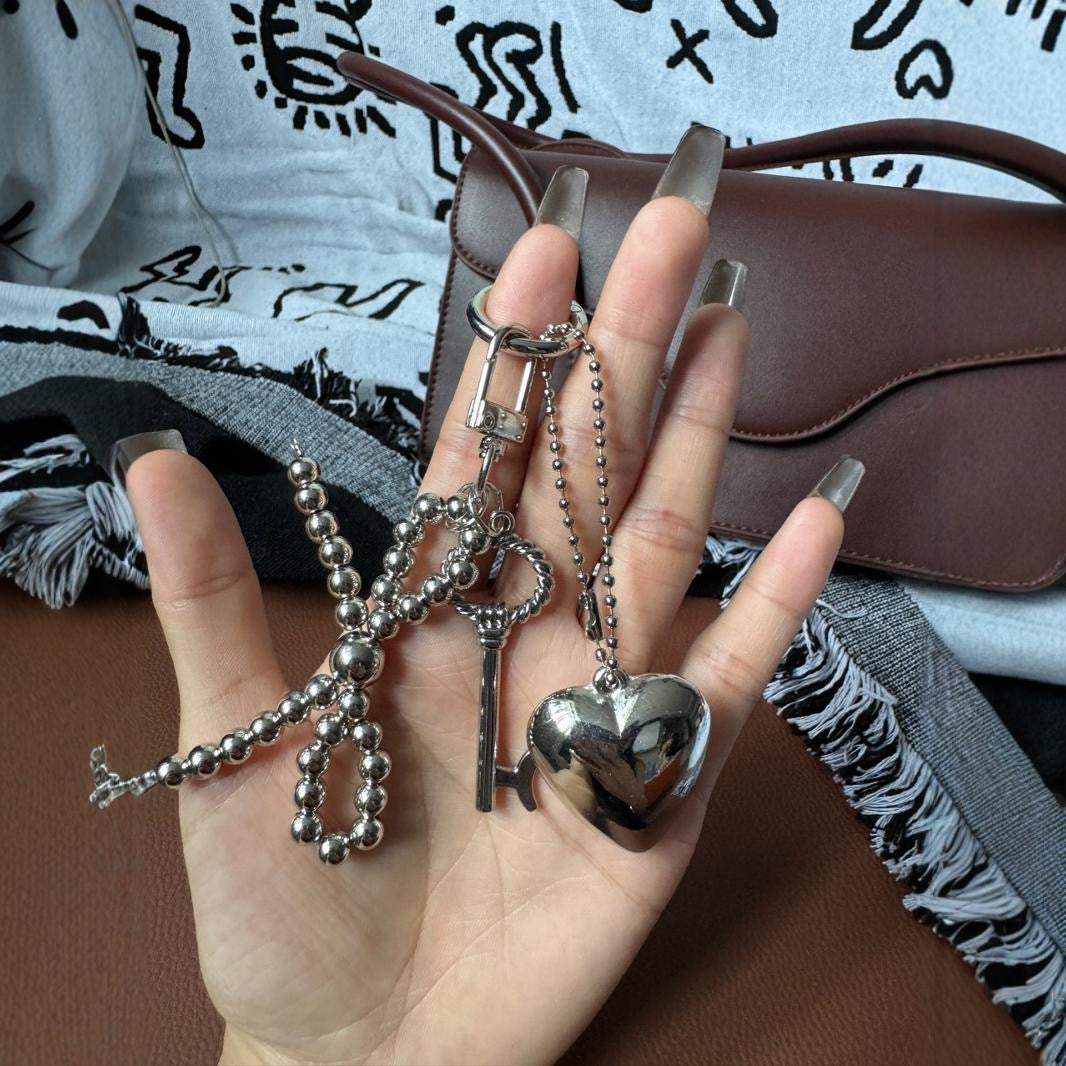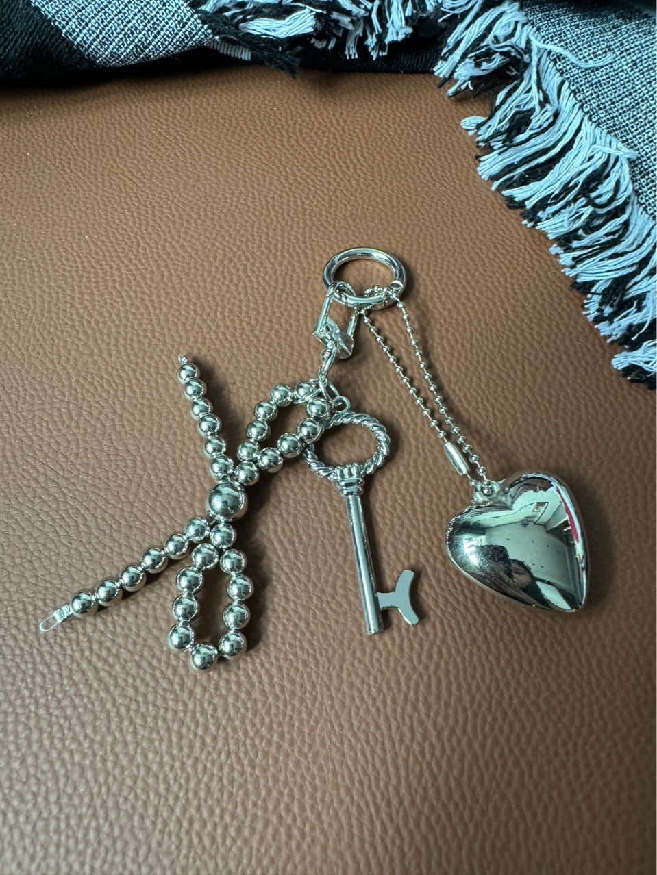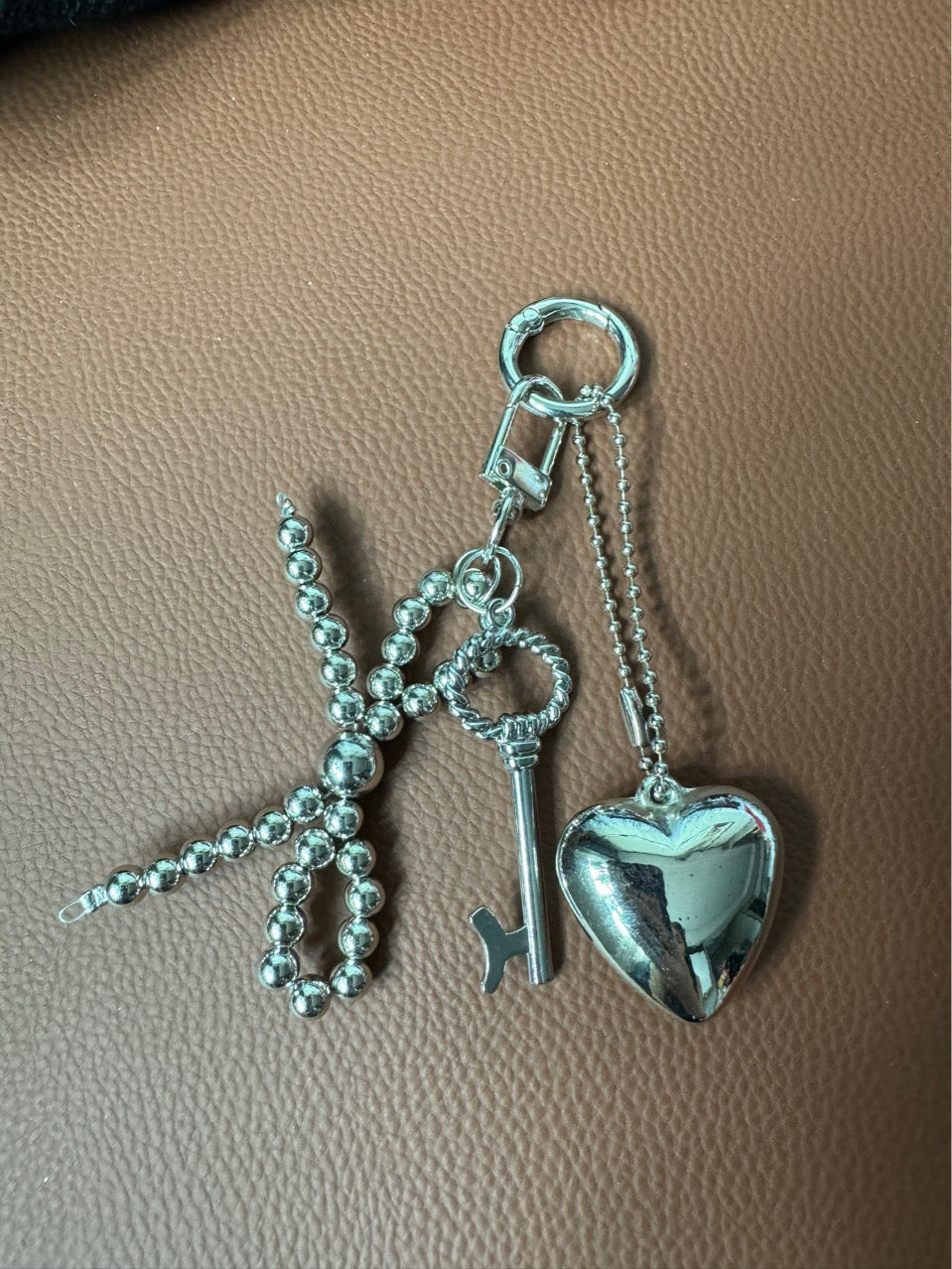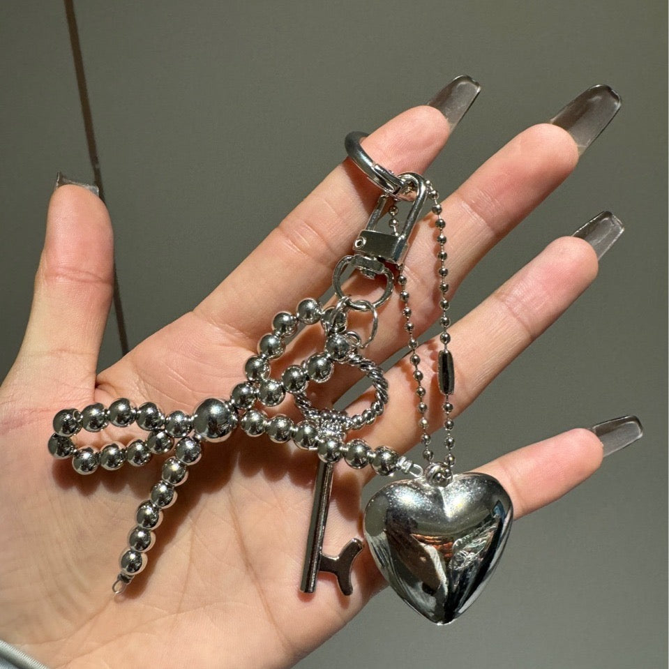 Trending accessories, bow bag charm, heart bag charm, key bag charm, silver bag charm, bag accessories, key chains, Y2K accessories